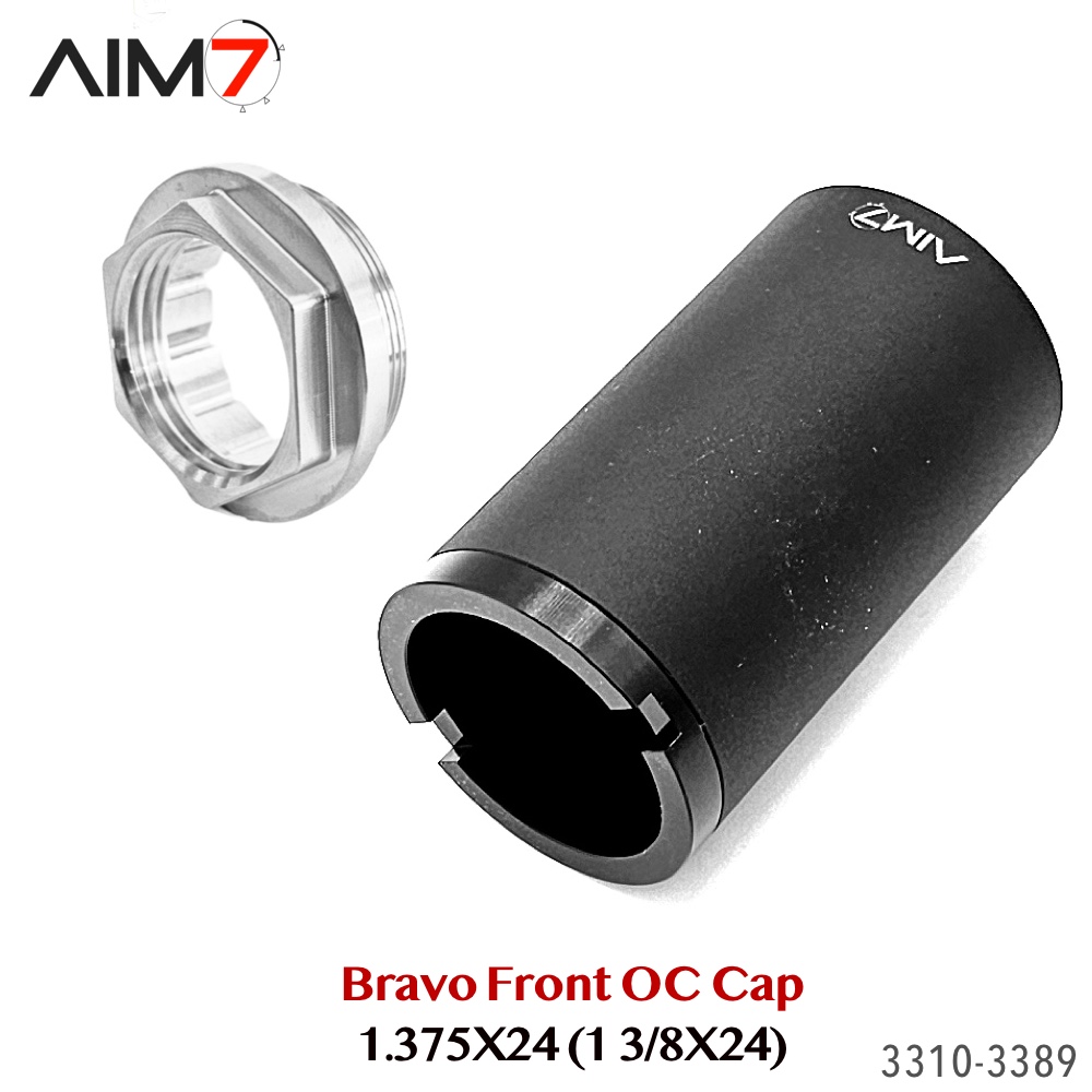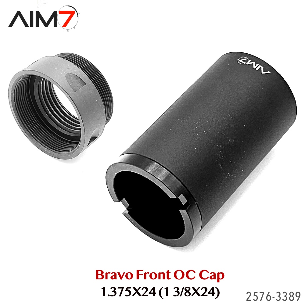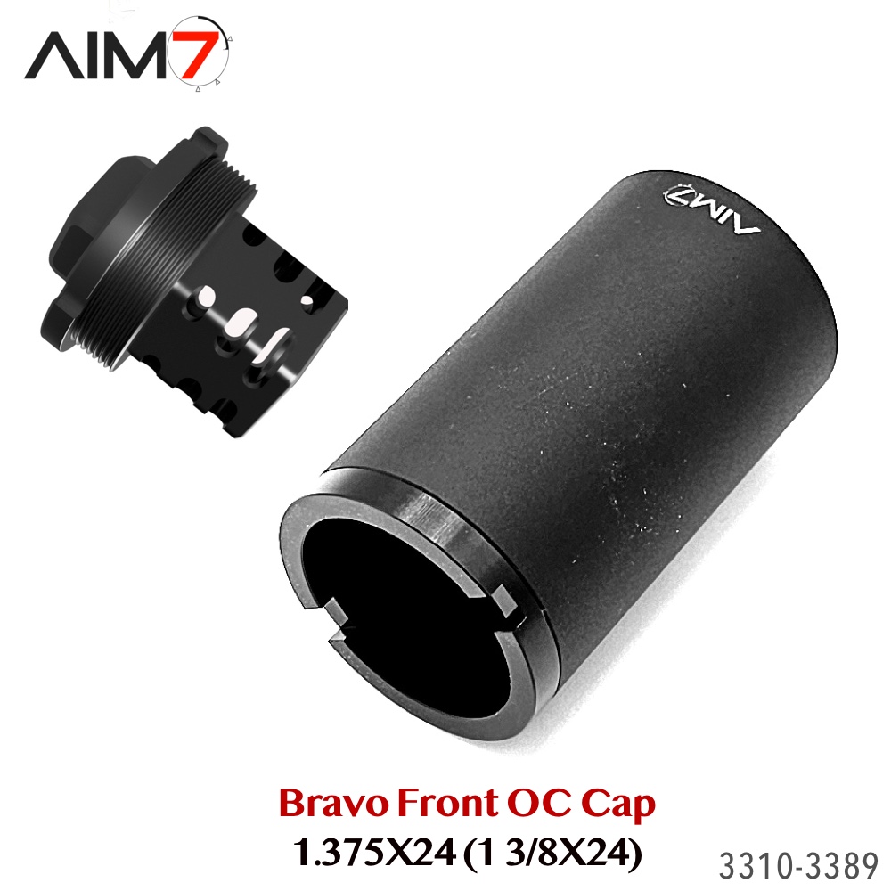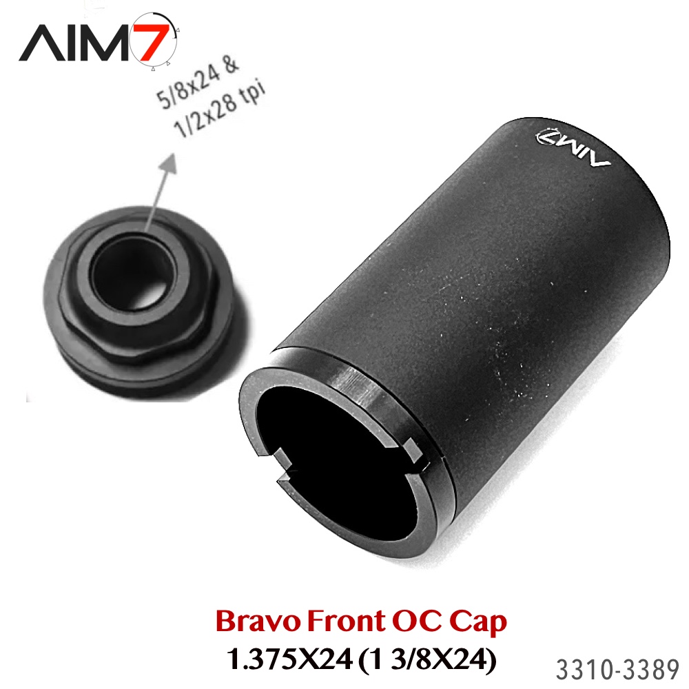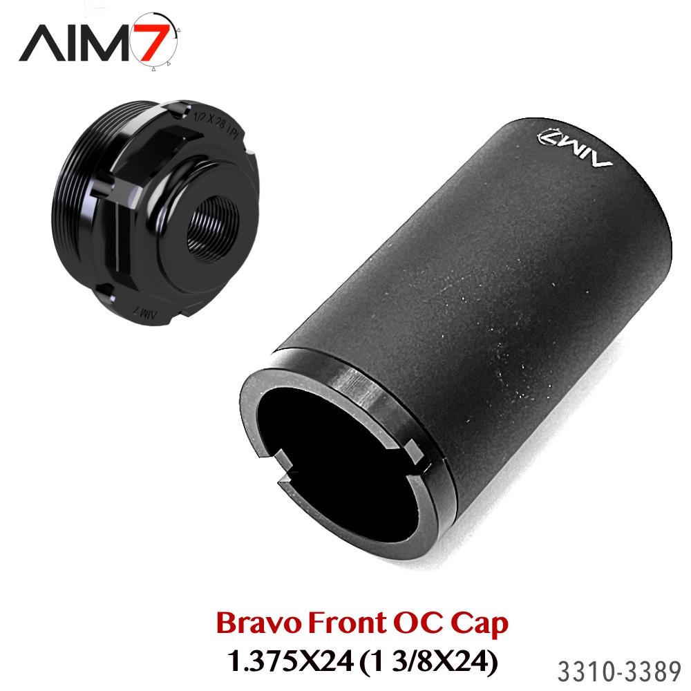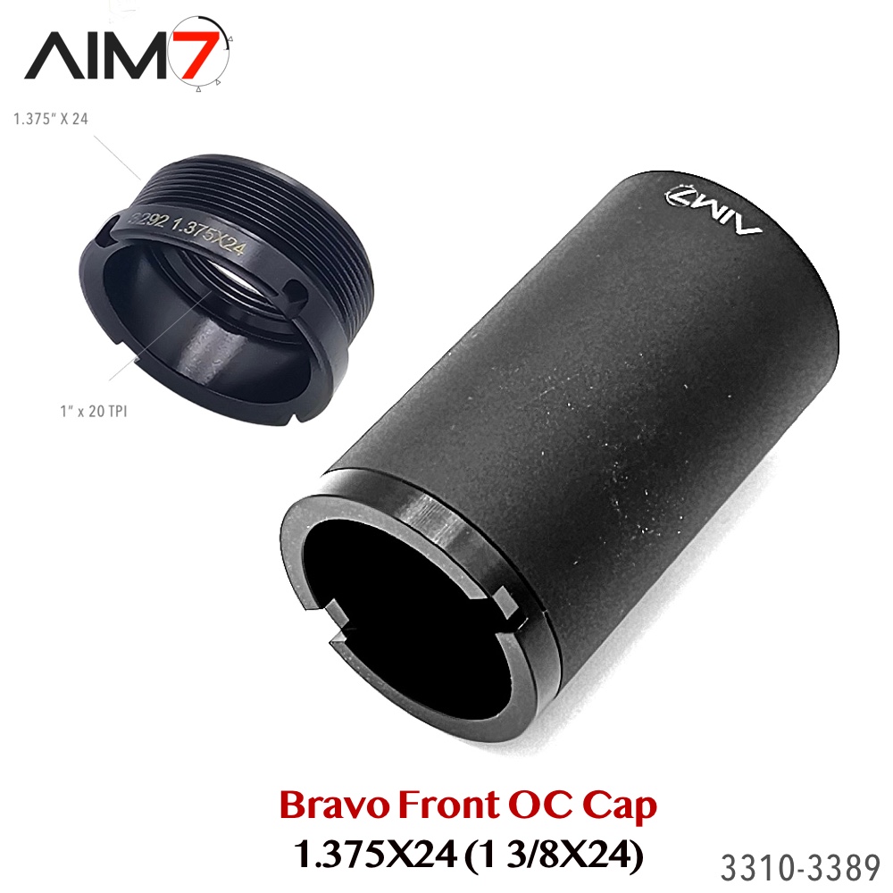 The AIM7 Open Front Cap is designed for Bravo / HUB pattern tube systems using the 1.375×24 (1-3/8×24) thread standard. Compatible with AIM7 MAGIK and other Bravo-pattern tube systems matching the listed specifications.