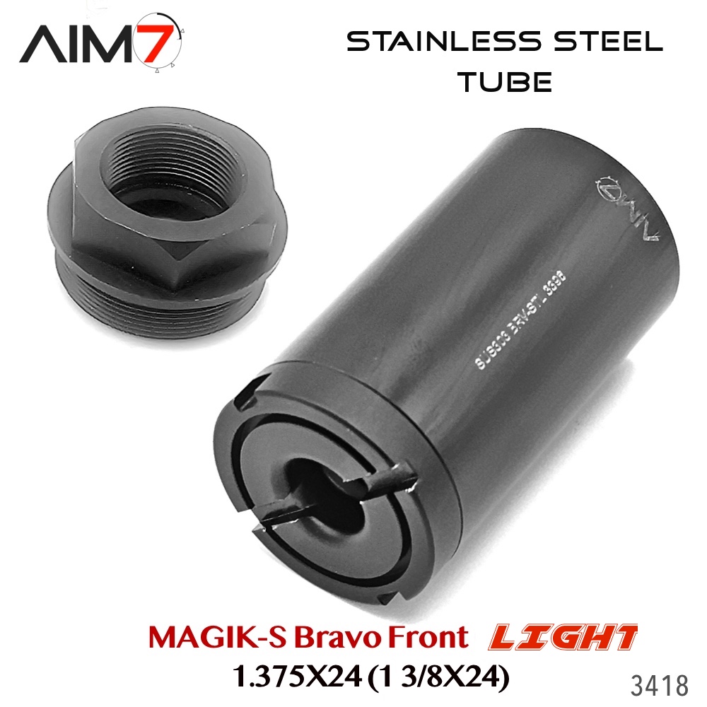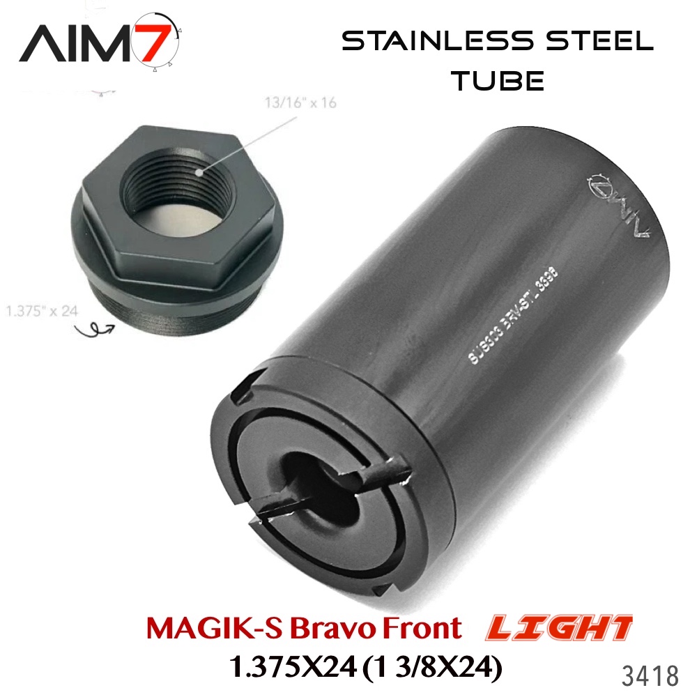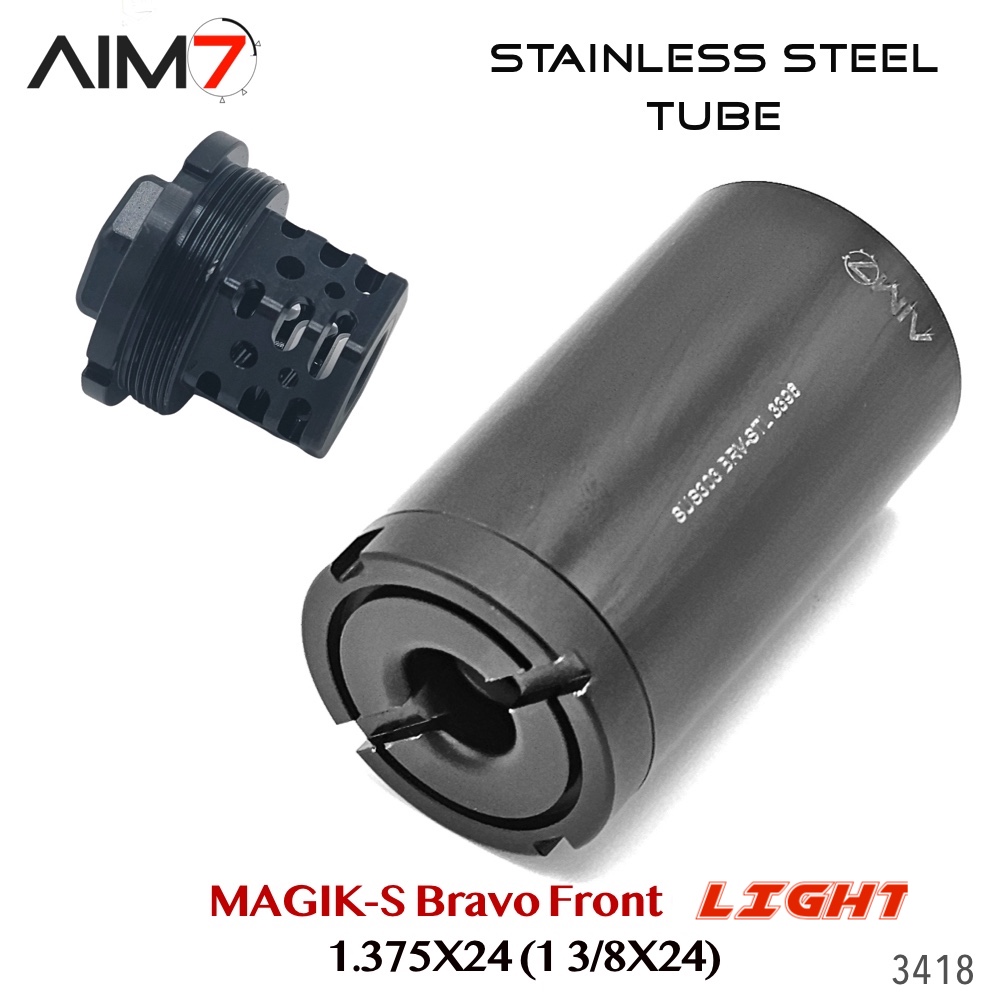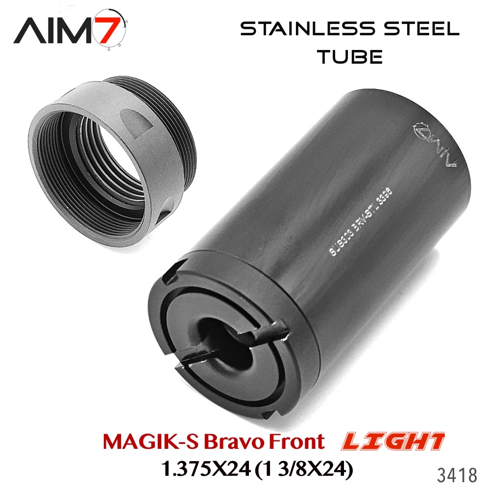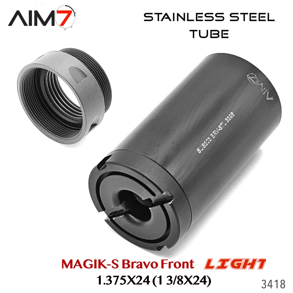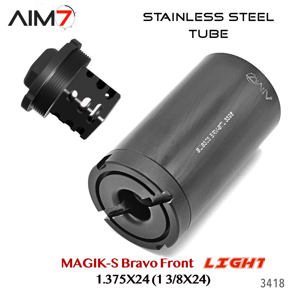 The AIM7 MAGIK Bravo Modular Assembly OC is a modular Bravo-pattern tube system constructed from strong, lightweight aluminum components. Designed for precision alignment and compatibility, each section uses the industry-standard 1.375×24 HUB / Bravo thread interface.